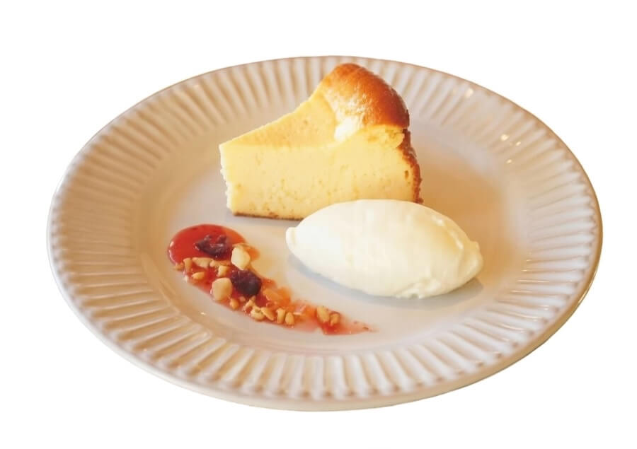 名店監修のレシピをもとに仕立てました。しっとりとなめらかな口どけが特徴で、チーズのコクに寄り添うよう、季節のフルーツで作った自家製ジャムを添えています。果実の酸味と甘みが、味わいに奥行きを加える一皿です。