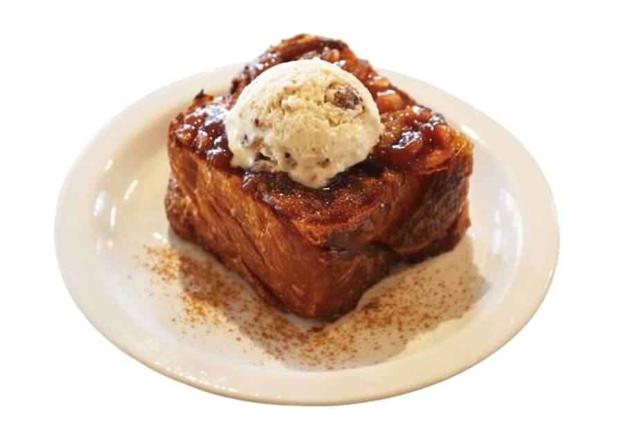 地元・紀の川市産のいちじくを無添加でじっくり煮込み、りんごとシナモンで香り豊かに仕上げたデニッシュトースト。バターの香りが広がるデニッシュに、果実そのものの甘みとコクが溶け合い、スタッフも虜になった自慢の一品です。