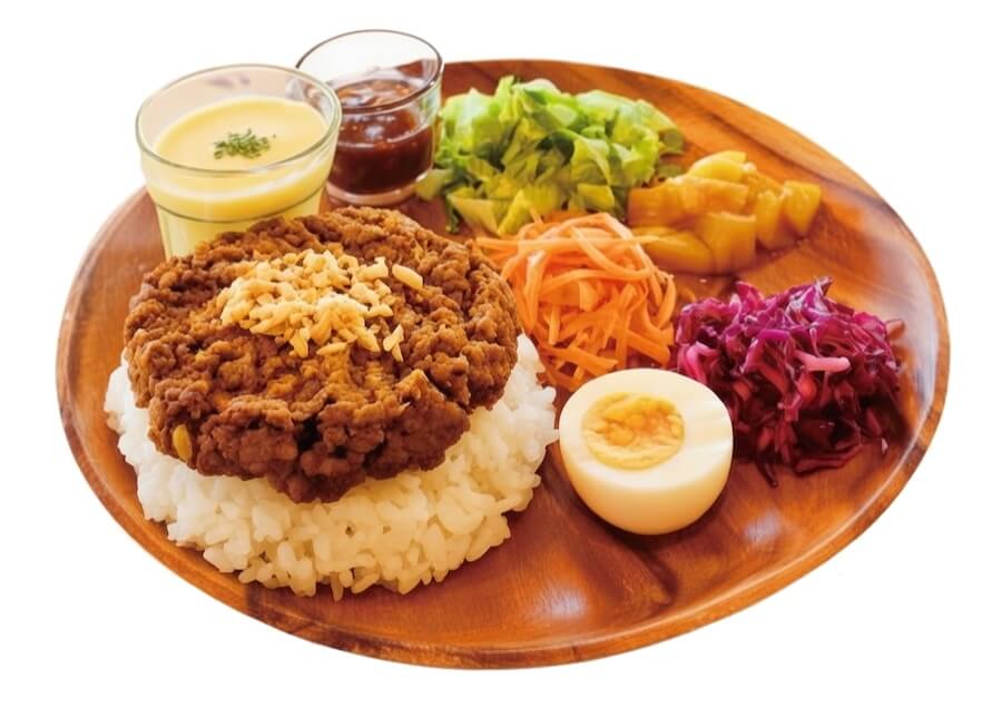 紀の川市産・和歌山県産の季節のフルーツを使用したスパイスキーマカレー。旬の果物をすりおろして加え、自然な甘みと奥行きのある旨みを引き出しました。果実の風味に寄り添い、独自にブレンドしています。