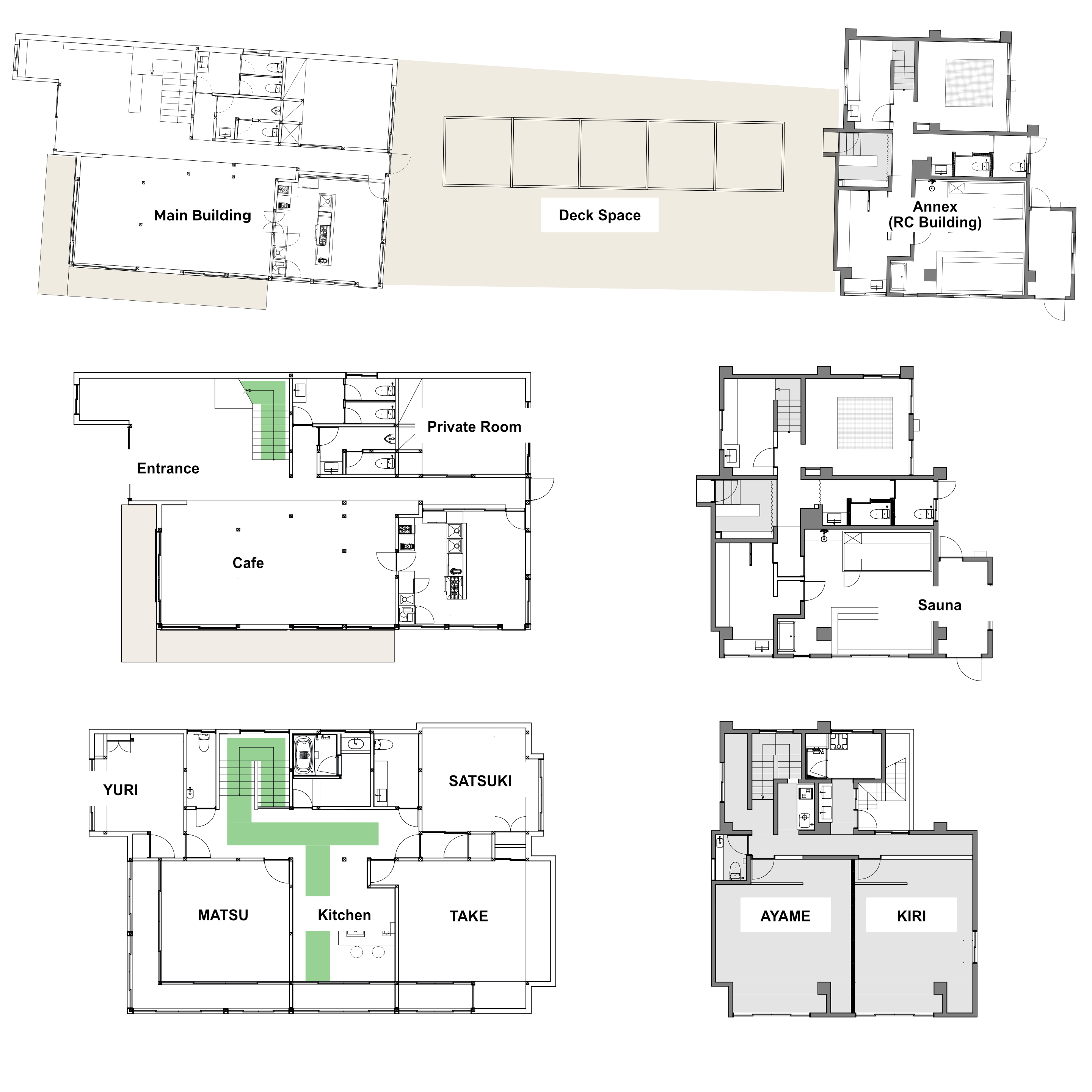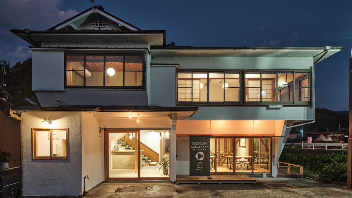 MIKASAKAN, located in Wakayama, Japan, at the gates of the historic Kokawadera Temple and near Mount Koya, is a hotel reborn in 2024 from the former luxury inn Mikasakan, originally built during the Taisho era. The property now features a café that doubles as a shared space and a private sauna available for exclusive use. Guests can enjoy a cold bath utilizing pure well water in the original tubs from the inn, as well as a wood deck with views of Mount Akiha, offering the perfect setting to rejuvenate your body and mind.